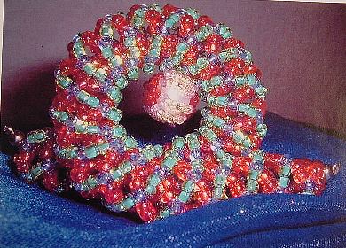 | 「クリスマスリース ’03」 高さ50mm <作品の解説> この作品は、テーブルに置くクリスマス&お正月おリースです。 リースの中には、パールビーズが入っていて上品な装いです。 また、リースの中心にもパールにビーズをあしらって アクセントになっています。オーガンジーのクッションの上に 置いて飾ってください。